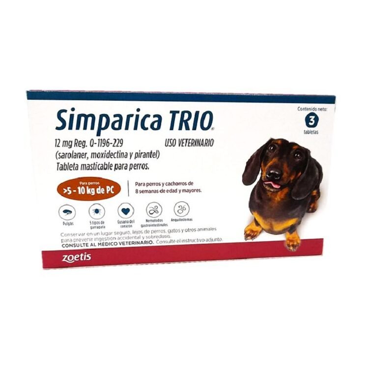 Simparica TRIO caramelo p/ gusano corazón + Antibiótico DOXICICLINA de 100 MG