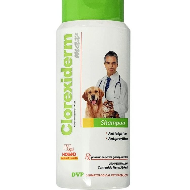 Clorexiderm MAX Shampoo 350 ML – 4 piezas, de Holland es un antiséptico con propiedades humectantes y reestructurantes del estrato córneo, auxiliar en el tratamiento de afecciones dermatológicas que cursan con prurito e inflamación (dermatitis, seborrea, etc.) causadas por un amplio espectro de microorganismos susceptibles a la clorhexidina.