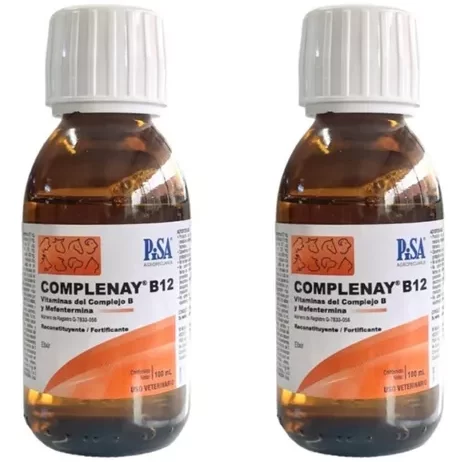 COMPLENAY B-12 ELIXIR 100 ML 5 FCOS. Estimulante, multivitamínico, hematopoyético reconstituyente y anti estrés, contiene las vitaminas del complejo B en dosis altas, adicionado con vitamina B12 esencial para el crecimiento, la reproducción celular y hematopoyesis y sulfato de mefentermina estimulante del sistema nervioso central. iIndicado para estimular a animales de alto rendimiento lo cual se refleja en una mayor ganancia de peso, fuerza y resistencia. Fortifica a animales enfermos y/o convalecientes y proporciona tiempos de recuperación más cortos. Útil para contrarrestar los efectos adversos del estrés sobre la productividad animal.