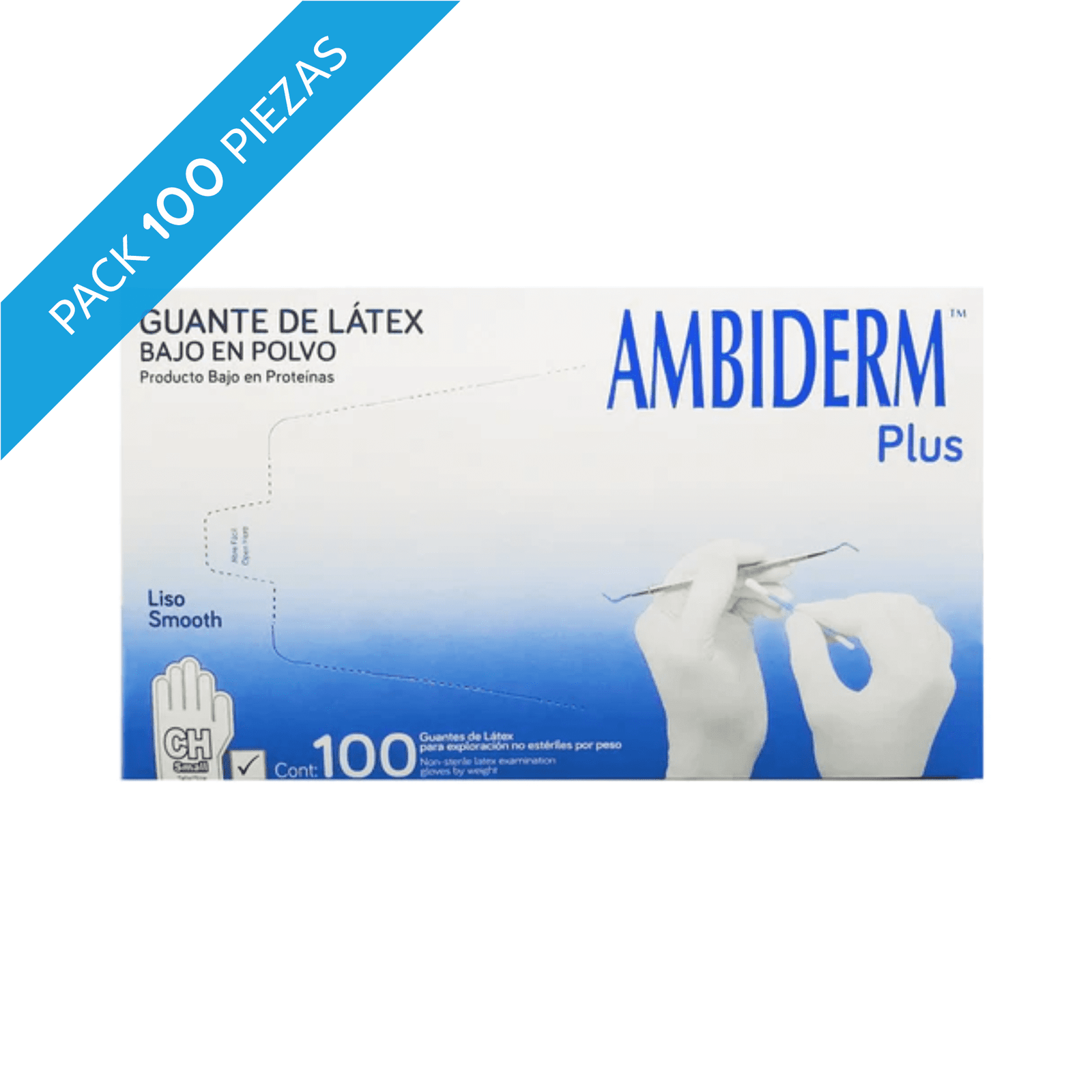 Guante chico látex ESTERIL para exploración 4 cajas con 100 Pzas c/u. Ambiderm Estéril de hule látex natural con ajuste perfecto y confortable, diseño ambidiestro para exploración, estéril bajo en polvo textura Liso.