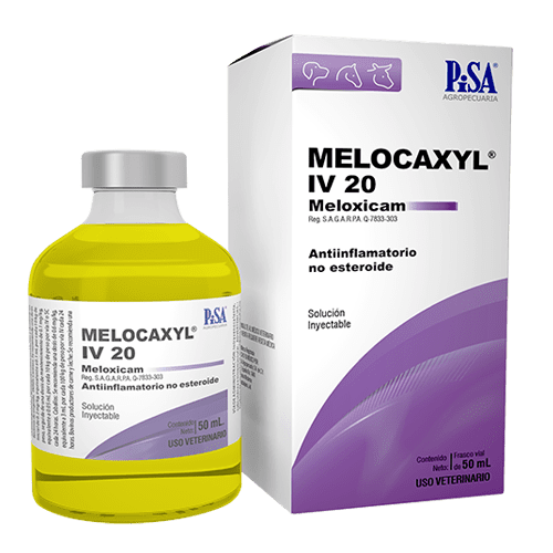 MELOCAXYL IV 20mg/ML FCO DE 50 ML – 2 piezas. Solución inyectable a base de meloxicam un antiinflamatorio no esteroide AINE con efecto analgésico, antiinflamatorio y antipirético para su uso en caninos.
