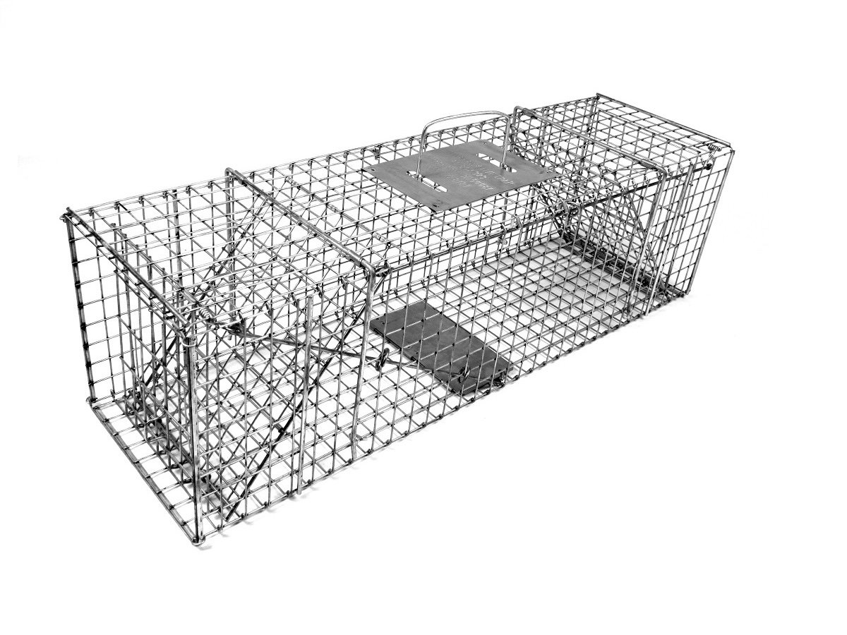 El modelo 206 con dos trampillas para gatos, conejos, zarigüeyas y animales de tamaño similar. Las trampas plegables se pliegan hasta ocupar aproximadamente una décima parte del espacio cuando no están desplegadas para facilitar su almacenamiento y transporte; vienen completamente ensambladas e instaladas en segundos sin necesidad de herramientas. El diseño de dos trampillas permite a los animales cautelosos ver a través de la trampa sin obstrucciones y entrar con confianza. Esta trampa de jaula pesa ocho libras y mide 32 largo x 9 ancho x 9 alto. Está construido con malla de alambre galvanizado de calibre 14 de 1″x1″.